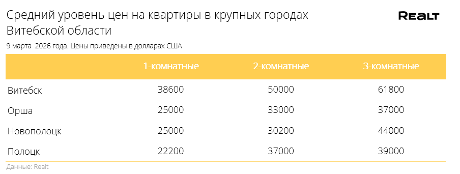 Стоимости квадрата все еще не остановили свой рост. Что произошло со стоимостью квартир в Витебске и области за 2−9 марта 2026 года