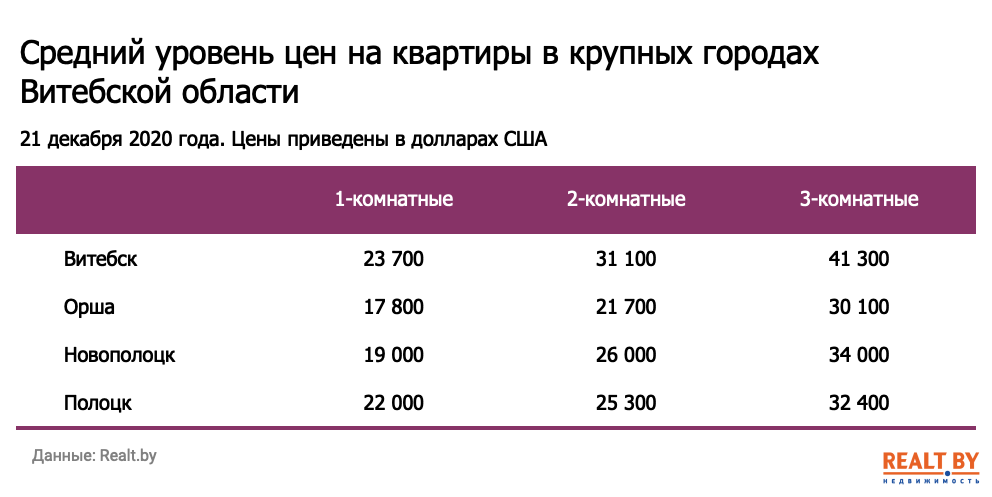 Мониторинг цен предложения квартир в Витебске и городах Витебской области за 14−21 декабря 2020 года