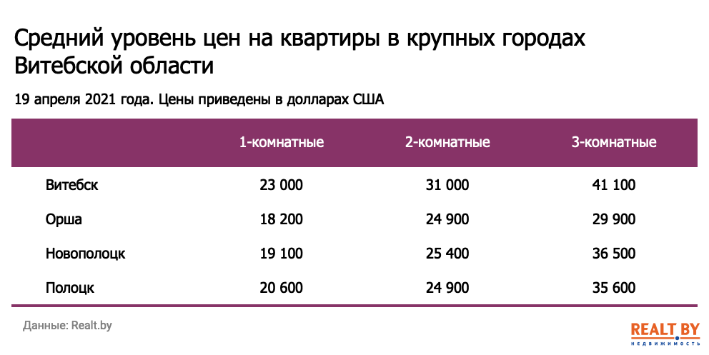 Мониторинг цен предложения квартир в Витебске и городах Витебской области за 12−19 апреля 2021 года
