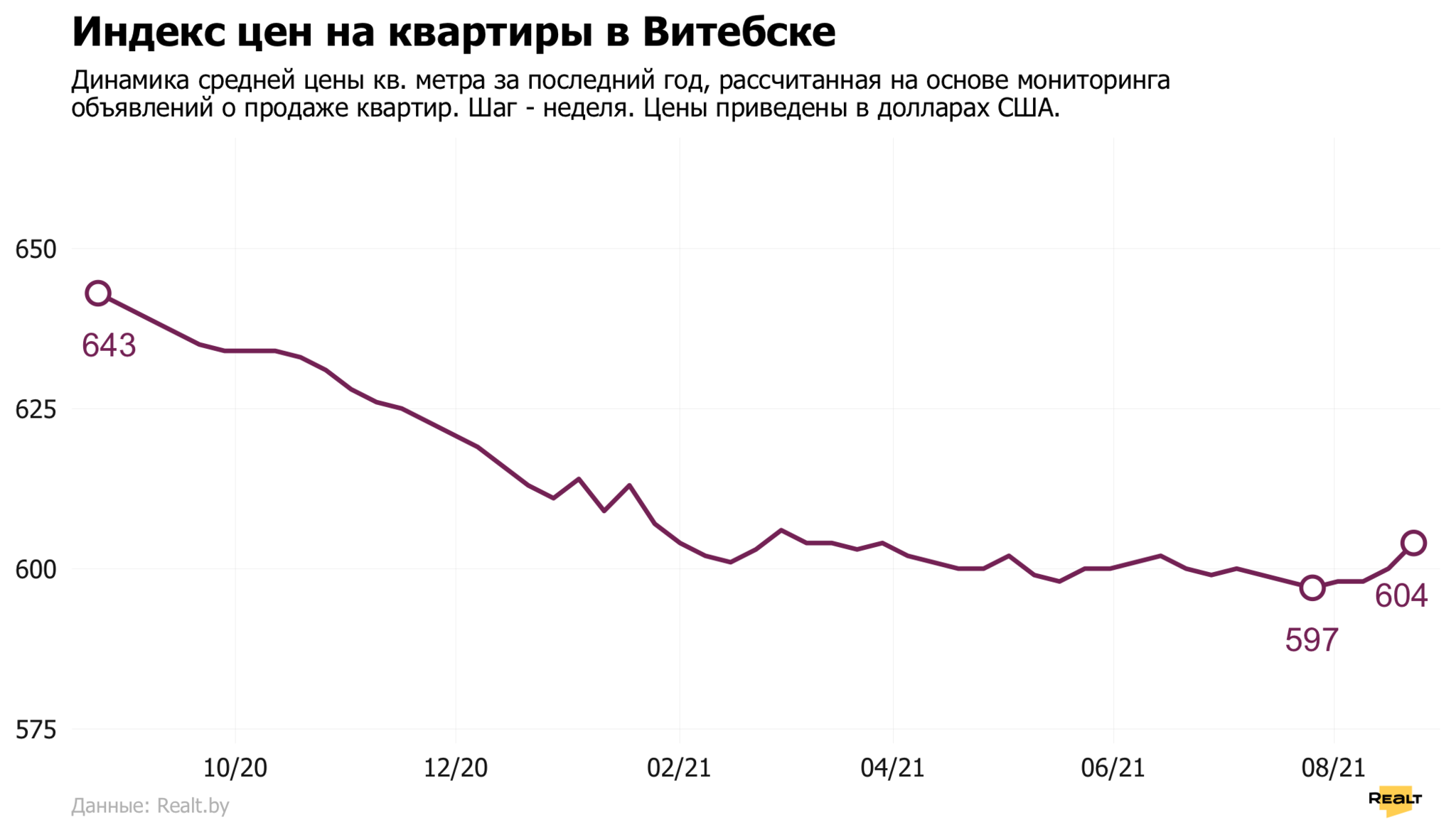 Мониторинг цен предложения квартир в Витебске и городах Витебской области за 16−23 августа 2021 года