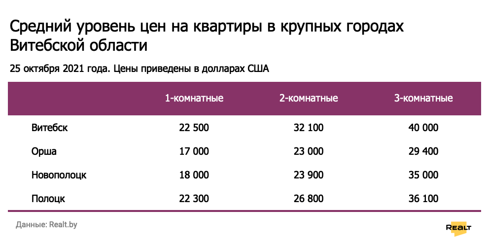 Мониторинг цен предложения квартир в Витебске и городах Витебской области за 18−25 октября 2021 года