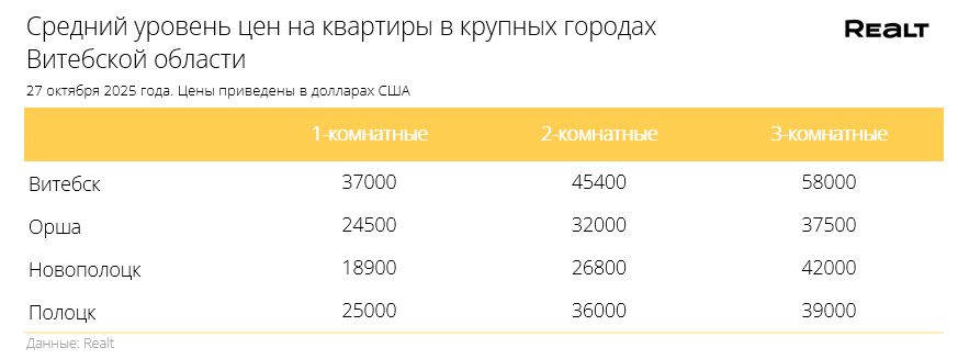 Дорожает квадрат двушек. Что произошло со стоимостью квартир в Витебске и области за 20−27 октября 2025 года