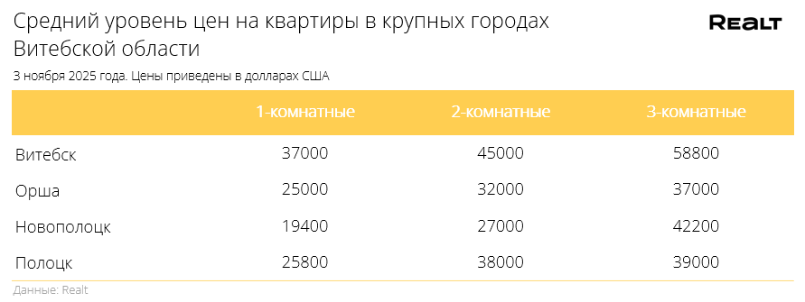 Цены однушек дорожают. Что произошло со стоимостью квартир в Витебске и области за 27 октября — 3 ноября 2025 года
