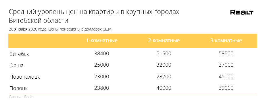 Цены замерли. Что произошло со стоимостью квартир в Витебске и области за 19−26 января 2026 года