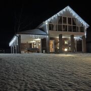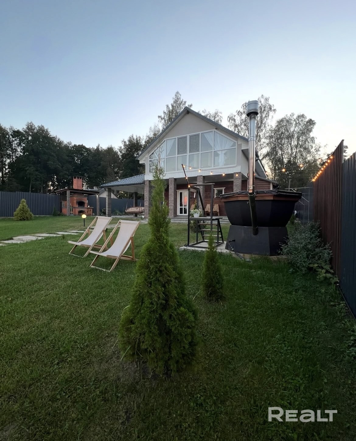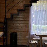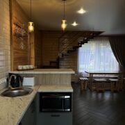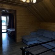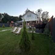 Дом оснащен всем необходимым:постельное,кухонные,банные принадлежности.На первом этаже расположена большая гостинная с деревянной мебелью,кухня ,сауна ,душ.На втором этаже 2спальные комнаты (у каждой выход на мансарду с видом на озеро),туалет,гордеробная.На территории большая мангальная зона,детская площадка,батут,велосипеды,различные зоны отдыха.Организовываем катания на квадроциклах.