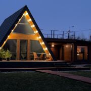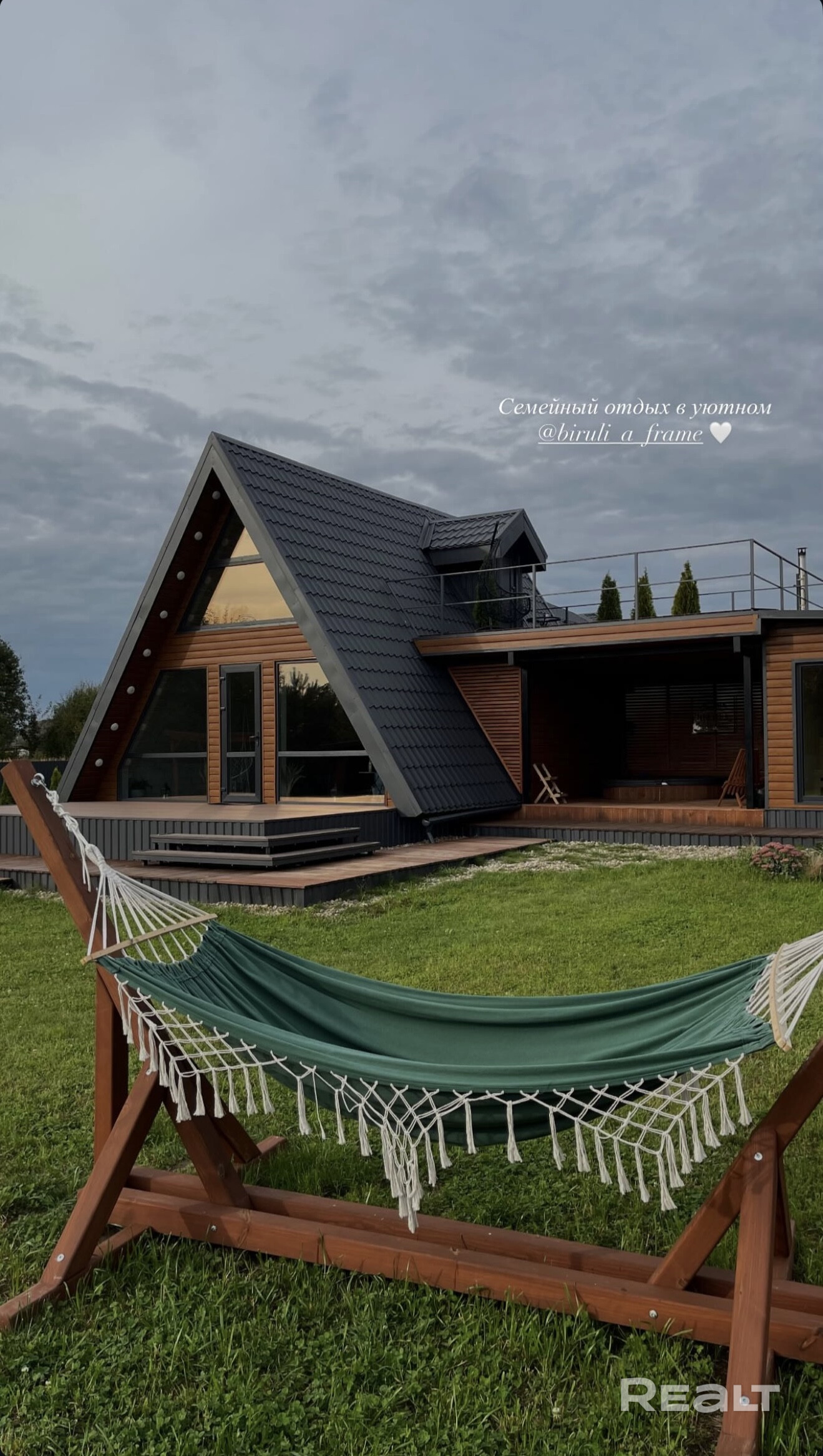 Сдаётся в аренду новый,уютный,очень теплый А-фрейм.Расположеный в тихом, живописном месте . Хорошая дорога до места локации(асфальт) Рядом заповедник,озеро, река, лес. На теретории участка находится дом с двумя терассами,парковка, беседка, гамак, зона барбекю(шампуры, решётка,дрова,уголь) Баня на дровах, купель. Дом очень укомплектован (тёплый пол, кондиционеры, интернет, проектор, качели, посуда). Баня и купель оплачиваются отдельно. Наш инстаграмм biruli_a_frame больше информации о доме.