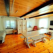 Усадьба представляет собой современный дом в деревенском стиле. Комнаты просторные: три комнаты по 30 м2 каждая, одна комната - 20 м2, одна - 15 м2 . Кровати для сна выполнены из дуба мастером по индивидуальному заказу. Матрацы ортопедические. Сны в нашей усадьбе всегда цветные и сказочные. Кухня - 30 м2 с русской печью и лежанкой. Оборудована всем необходимым: индукционная плита, духовка, мультиварка, посудомоечная машина и т.д. На втором этаже также имеется дополнительная мини-кухня (чайник, микроволновка, холодильник).Вокруг дома расположена огромная веранда с двумя большими столами, где можно насладиться пением птиц и вкусить дары рыбного края, а также свежее коровье молоко и творог домашнего приготовления, деревенские яйца. Также в вашем распоряжении мангальная зона, печь для казана и казан! По желанию — баня с дубовыми вениками и ароматным чаем. В 10-ти минутах ходьбы находится пляж. Если вы любитель простой русской кухни – блюда из русской печи. Приезжайте! Здесь — ваше идеальное лето на озере Снуды!