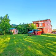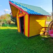 Площадь с террасой: 30 м2. Расположение: Находится на первом этаже. Отдельный вход. Домик представляет собой полностью автономную часть усадьбы и не является отдельно стоящим зданием. Подходит как для краткого, так и долгосрочного проживания. Вид из окна: на сад и террасу. Территория: к домику прилагается вся территория усадьбы с парковкой, беседками, мангалами и зонами отдыха. Спальные места: двухспальная кровать шириной 140 см и двухъярусная кровать длиной 1,85 метра. Вместимость: для 4 гостей (одно 2сп + два 1сп), рекомендуем для пары или семьи с детьми. Три-четыре взрослых гостя допускается, но без претензий к нам. Лучше бронировать более просторный наш номер или домик. Если вам надо забронировать два номера, то ближайший будет ФИОЛЕТОВЫЙ ДОМИК-СТУДИЯ