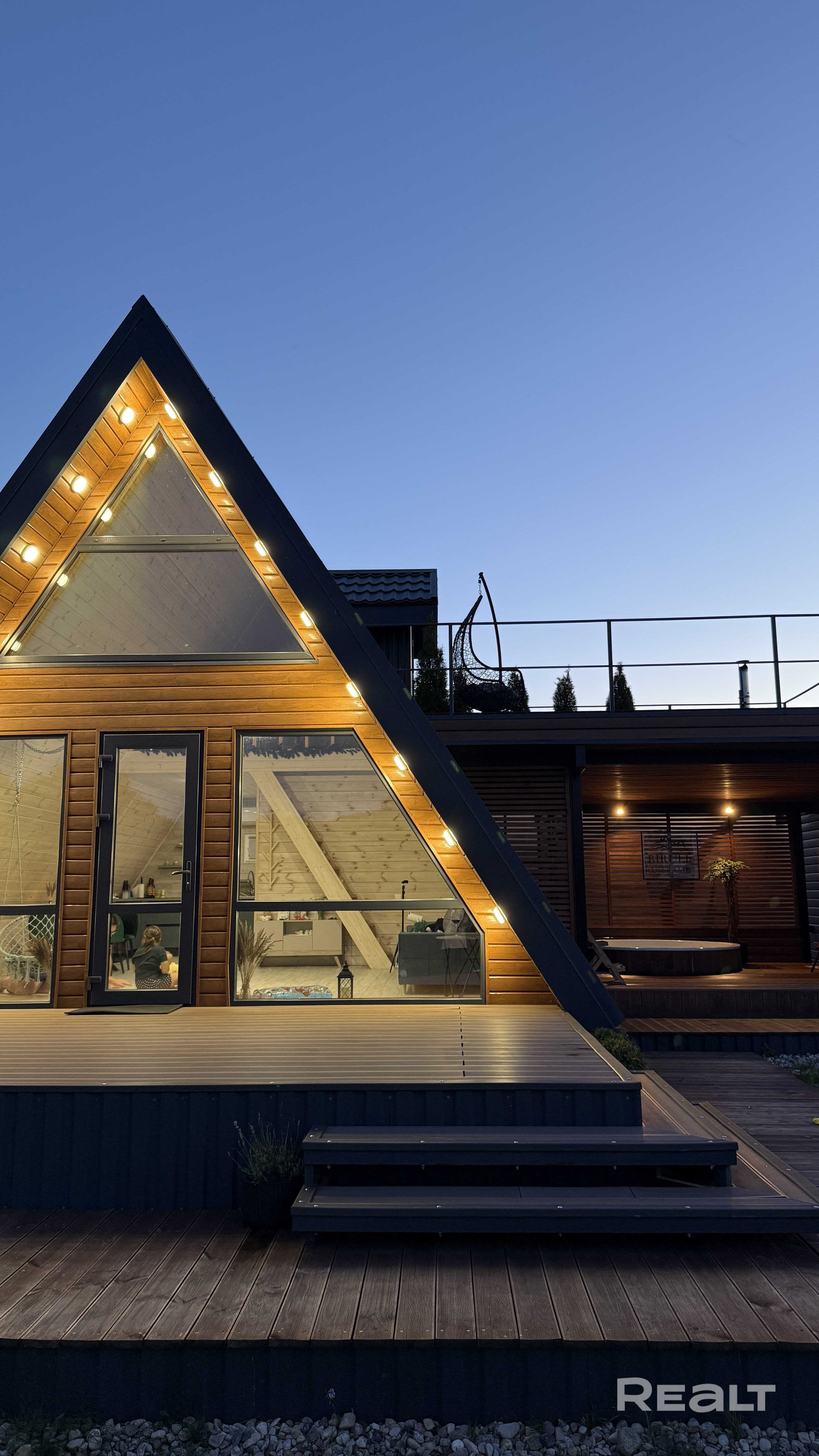 Сдаётся в аренду новый, уютный, очень теплый А-фрейм. Афрейм большой и в нем комфортно находиться четырем человекам. Первый афрейм с террасой на втором этаже. Расположенный в тихом и красивом месте . Хорошая дорога до места локации(асфальт). Рядом заповедник, озеро, река, лес. На территории участка находится дом с двумя террасами,парковка, беседка, гамак,качели,зона барбекю(шампуры, решётка,дрова,уголь) Баня на дровах, купель под навесом(защищена от ветра и дождя). Дом очень укомплектован (тёплый пол, кондиционеры, интернет, проектор, качели, посуда). Баня и купель оплачиваются отдельно. В пятницу, субботу и праздничные дни дом обязательно бронируется с баней и купелью. С животными нельзя.