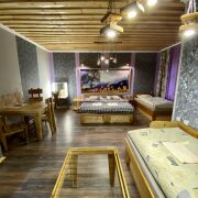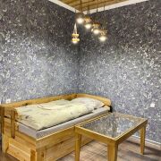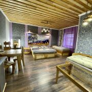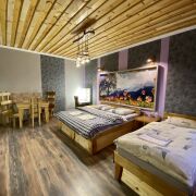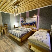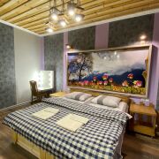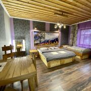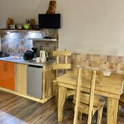 Коттедж представляет собой двухэтажный дом с 7-ью отдельными комфортабельными апартаментами-студио, в каждом из которых имеется персональная ванная комната и кухня. Большая часть апартаментов имеет свой отдельный вход с улицы. Площадь апартаментов, в зависимости от категории, составляет от 30 до 45 кв.м. В каждом из апартаментов имеется телевизор, интернет, полностью оборудованная кухня (холодильник, газовая плита, электрочайник, посуда и т.д), холодное и горячее водоснабжение. Большая часть мебели и отделка в доме – ручной работы, выполненная с использованием натуральных материалов. Всем гостям мы предоставляем банные и кухонные полотенца и комплекты чистого постельного белья.