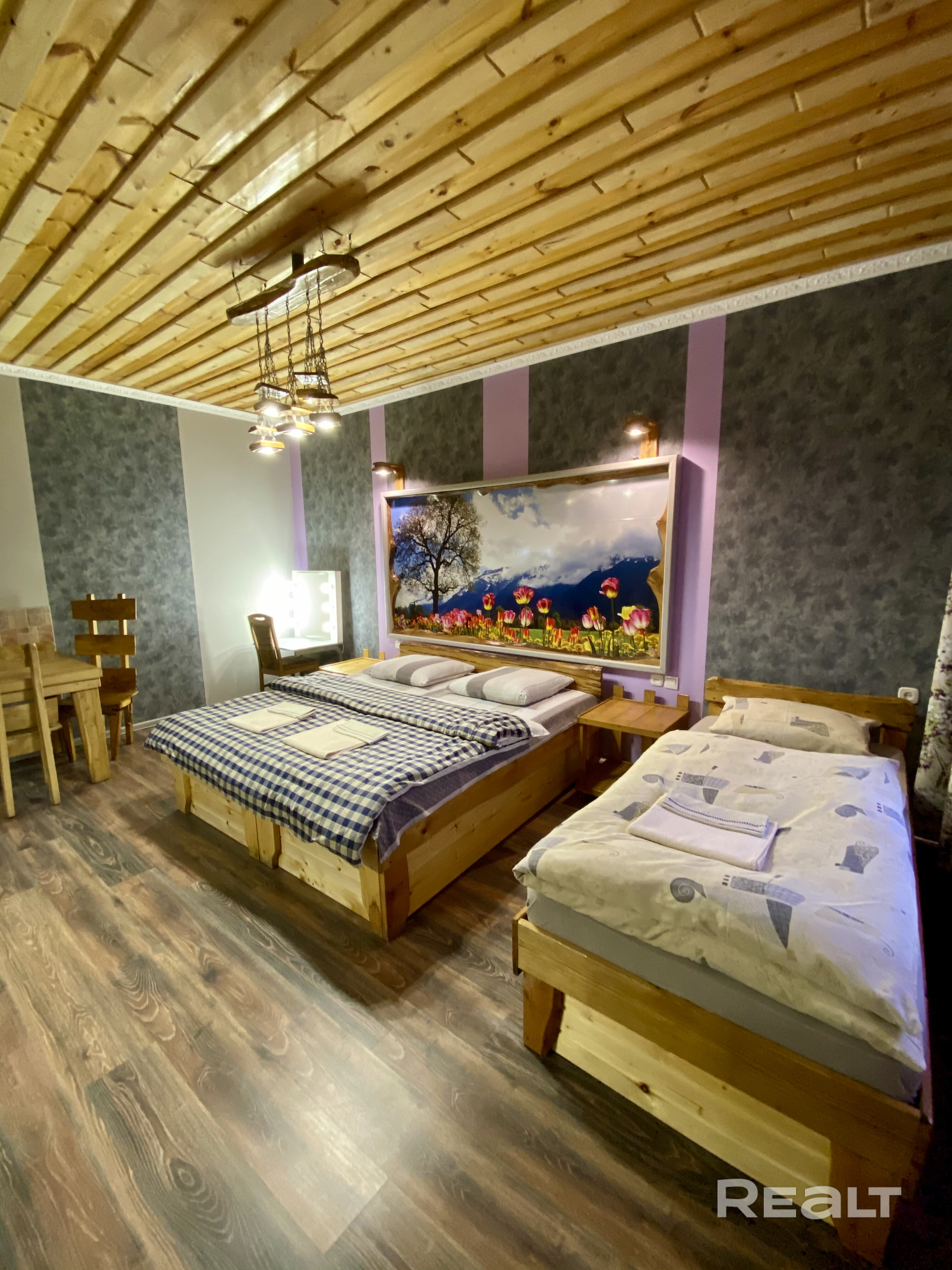 В шаговой доступности от коттеджа – продуктовый магазин, кафе, банк, аптека, рынок. Совсем рядом – костел Рождества Девы Марии и Свято-Успенская церковь, оба храма конца 19 века. Усадьба расположена у подножья культурно-исторического комплекса «Замковая гора» – древнее городище, самый знаменитый исторический памятник Браслава. С вершины горы открываются незабываемые виды на Браслав, его окрестности и озера.