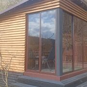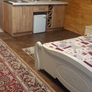 1-комнатный домик студия,оборудован всем необходимым,дворик с площадкой для автомобиля,садовой мебелью и мангалом,беседка с камином,два велосипеда,баня(по согласованию),по периметру забор, находится в центре города, между 2-х озер,