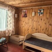 Дом двухэтажный, кирпичный, на первом и втором этажах есть по одной просторной светлой комнате(наличие спальных мест можно обсудить заранее),внутри дом отделан деревом,окна пластиковые,туалет/душ оборудованы на улице(дерев.вариант,но всё чисто,аккуратно). На участке есть плодово-ягодные дерев.,кустарники,цветы, пострижена травка, Есть затенённое место для отдыха и приема пищи, также есть место для парковки авто.