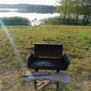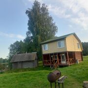 Дом на берегу озера в 30 метрах от воды, для отдыха и рыбалки , свой причал , терраса с панорамным видом на озеро, парковка, зона барбекю, детская площадка, батут , кострище , тихое комфортное уединённое место .