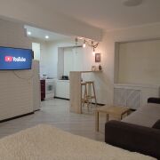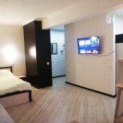 Smart - TV, Wi-Fi, всё необходимое для проживания: техника, кухонные и постельные принадлежности. Рядом круглосуточное кафе-кондитерская Zdoba, различные магазины, в 5 минут ходьбы набережная, аллеи, главная площадь города,