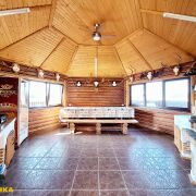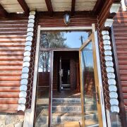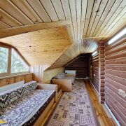 - Бревенчатая двухэтажная баня с мансардой и мини-бассейном, на первом и втором этаже комнаты для отдыха.