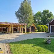 - Летняя кухня с банкетной зоной, зона барбекю, закрытая беседка, хозпостройка, на территории коттеджа расположена парковка на 4 машины.