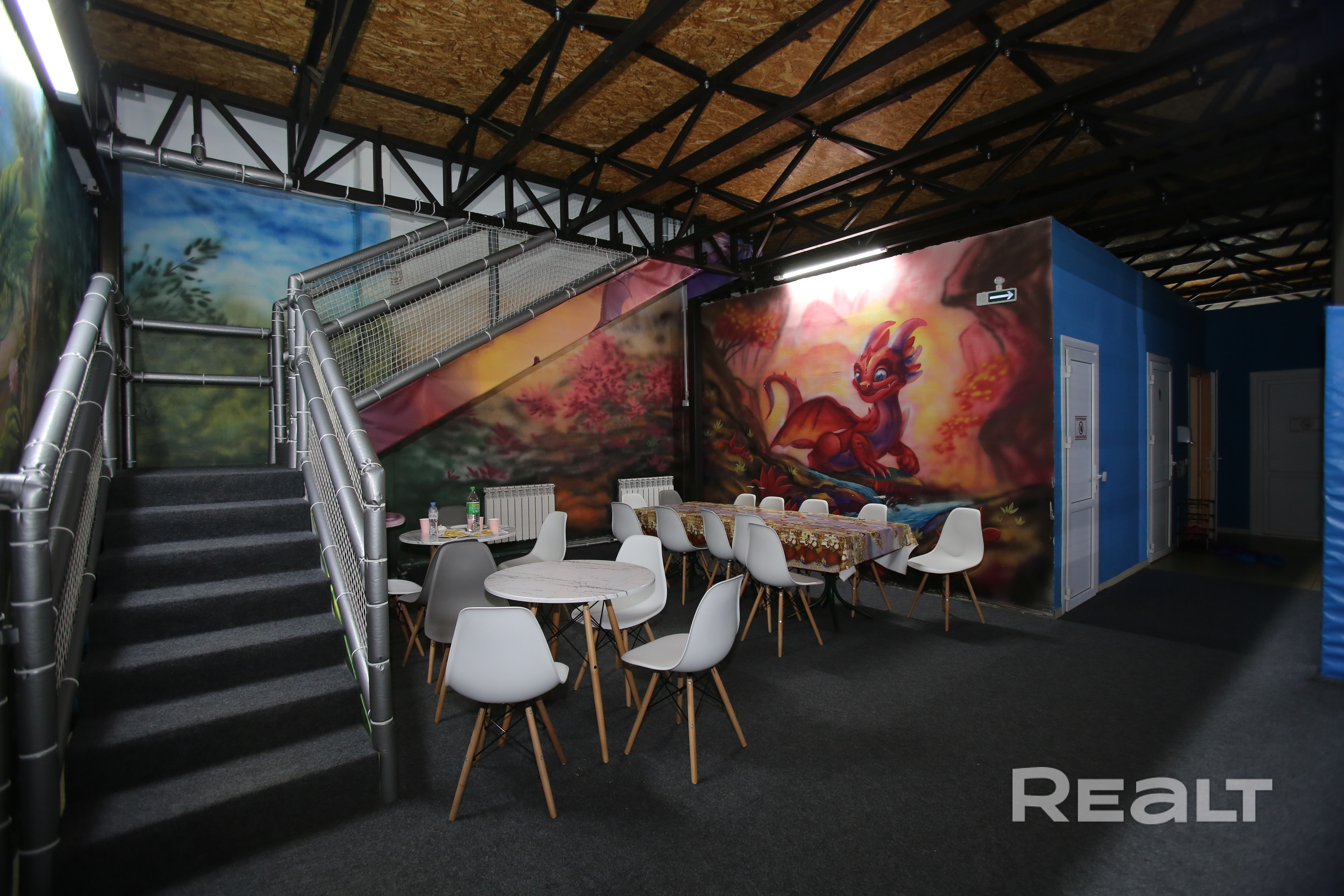 На территории парка работает кафе, в котором можно заказать вкусную еду и напитки на ваш праздник. Зона кафе расположена на втором уровне парка и с нее открывается очень красивый вид на игровое пространство парка