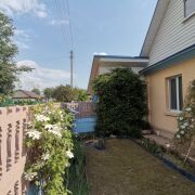 На территории имеется просторный гараж для автомобиля со смотровой ямой и электричеством. Участок – 5,9 соток, огорожен, есть летняя кухня, хоз.постройки, летний душ, каркасный бассейн, предусмотренный для внутреннего дворика в сезон. На участке много кустовых роз, лилий, клематисов.