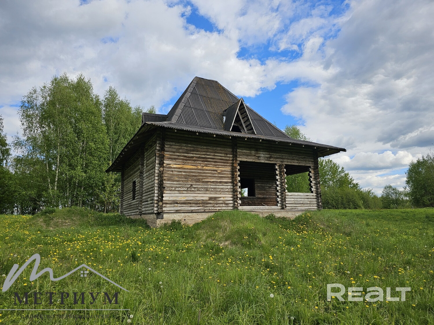 На участке 25 соток: дом (фундамент ленточный из бутобетона, стены из бревна, крыша из ондулина),