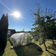 На участке беседка с печным комплексом и зоной барбекю, гостевой домик с санузлом, оборудованное место под бассейн и небольшой огород.