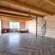 Один из домов – деревянный сруб, который можно использовать как банкетный зал, а на втором этаже есть возможность оборудовать комнату отдыха.