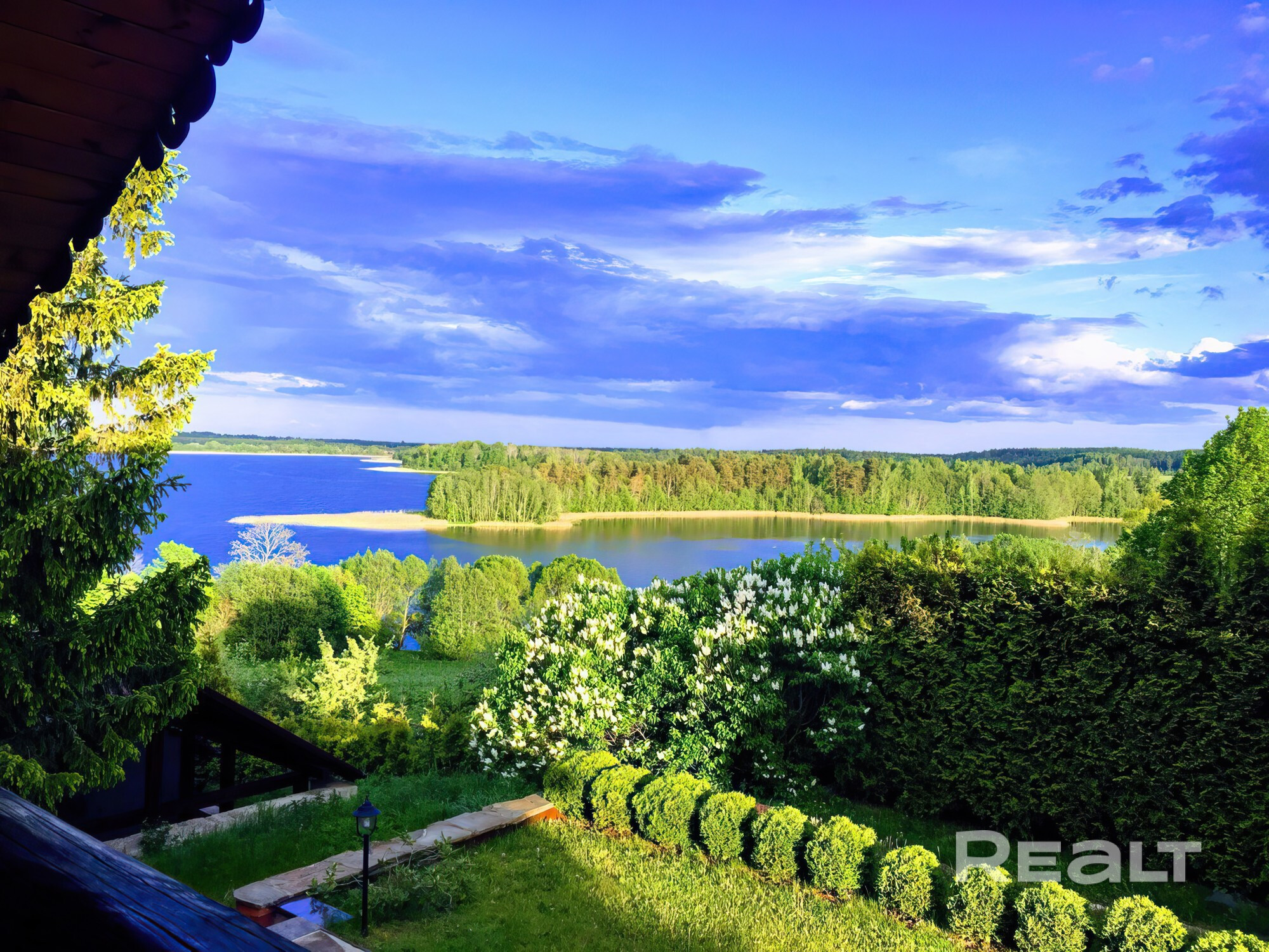 Мансардный этаж в свету, на всю жилую площадь первого этажа с выходом на лоджию (с видом на озеро и лес).