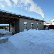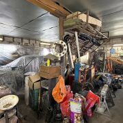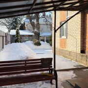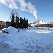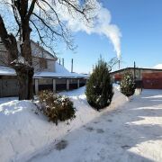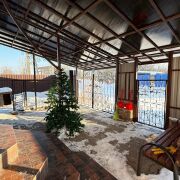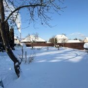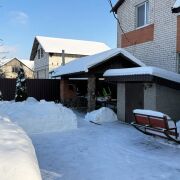 На территории большой теплый гараж с двумя высокими воротами, полностью оборудован с ямой.