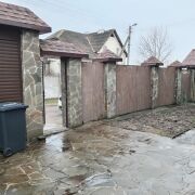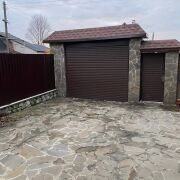 - На участке площадью 5 соток есть парковочное место, дорожки и отмостка из натуральной брусчатки, а также забор с ленточным фундаментом, обеспечивающий приватность.
