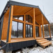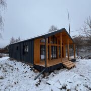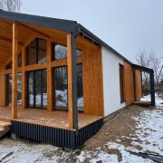 Красивый и современный каркасный дом в стиле барнхаус! Фундамент -монолитная плита. Снаружи выполнена комбинированная отделка: мокрый фасад-корник, металл-двойной стоячий фальц, дерево. Утепление выполнено каменной ватой стен 200мм, крыши 250м . Выполнена электрика, канализация, есть вода. Окна ПВХ.большая кухня-гостиная, с выходом на террасу.участок находится в тупике, поэтому очень тихий, но при этом расположен недалеко от центра города и речки!