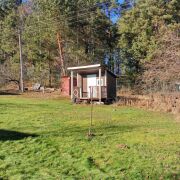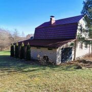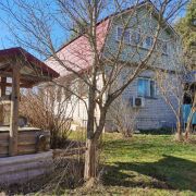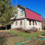 Участок 13,2 соток ухоженный, угловой, граничит с лесом. На участке также расположены гараж, пристроенный к дому, отдельно стоящая баня, санузел (унитаз +душ), колодец и классический туалет. Санузел подключен к трехконтурной местной канализации. На участке растут яблони, груши, вишни, плодовые кусты. Есть небольшие грядки.