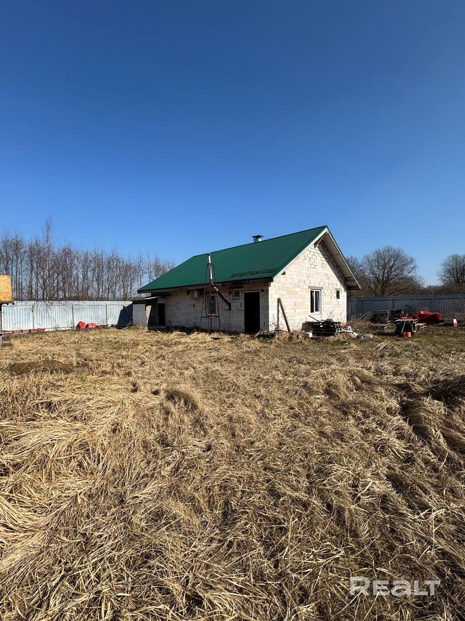 Дом стоит на плите, построен из газоселикатного блока. Общая площадь составляет - 100 м2, жилая - 41,9 м2. Огромный чердак. Крыша - металлопрофиль.