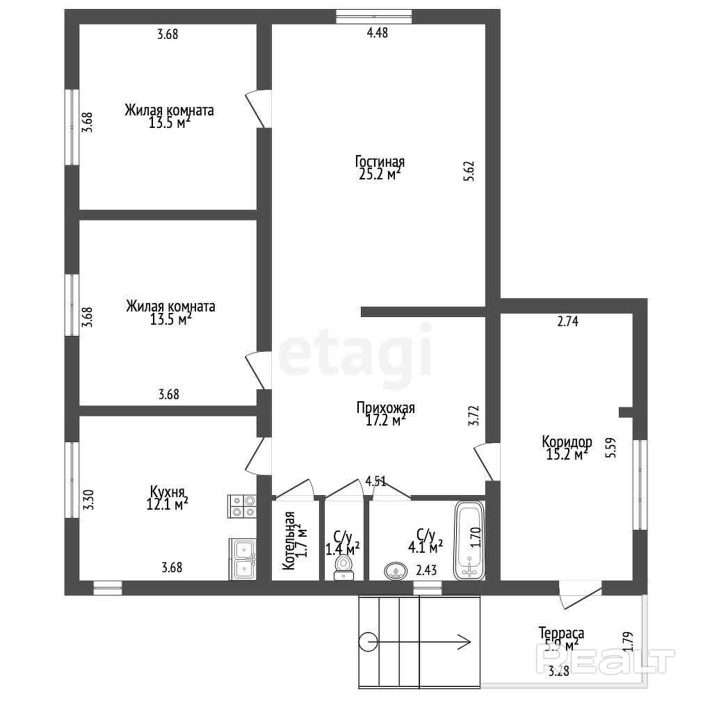 - Площадь кухни