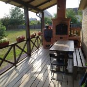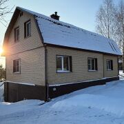 Дом деревянный ( бревно) и газосиликатный блок, утеплен и обшит сайдингом, крыша металлочерепица, окна все ПВХ.
