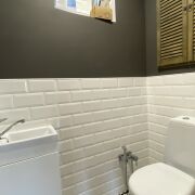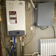 На 1 этаже теплый пол, второй этаж радиаторы отопления и теплый пол в ванной.