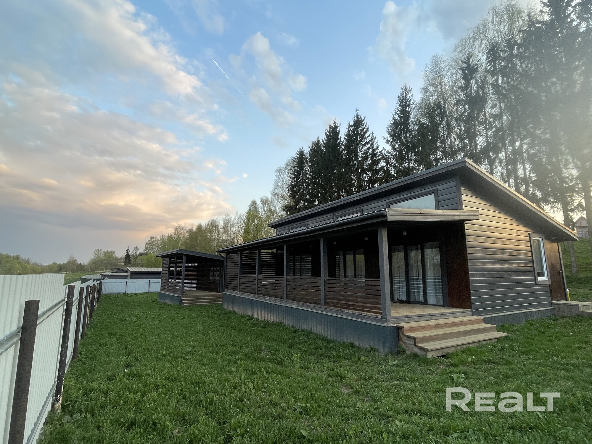 Дом построен по каркасной технологии. Кухня-гостиная 31,4 кв.м., две уютные спальни, одна из которых с антресолью, санузел с душевой, крытая терраса с выходом на участок, баня ( готовность 80 %) с отдельной террасой, навес для автомобиля. Живописная природа. Дом подходит для постоянного проживания( возможна прописка), отдыха с семьей, в качестве базы для аренды, глэмпинга.
