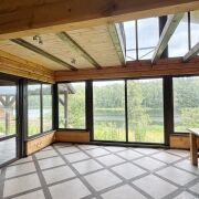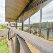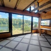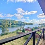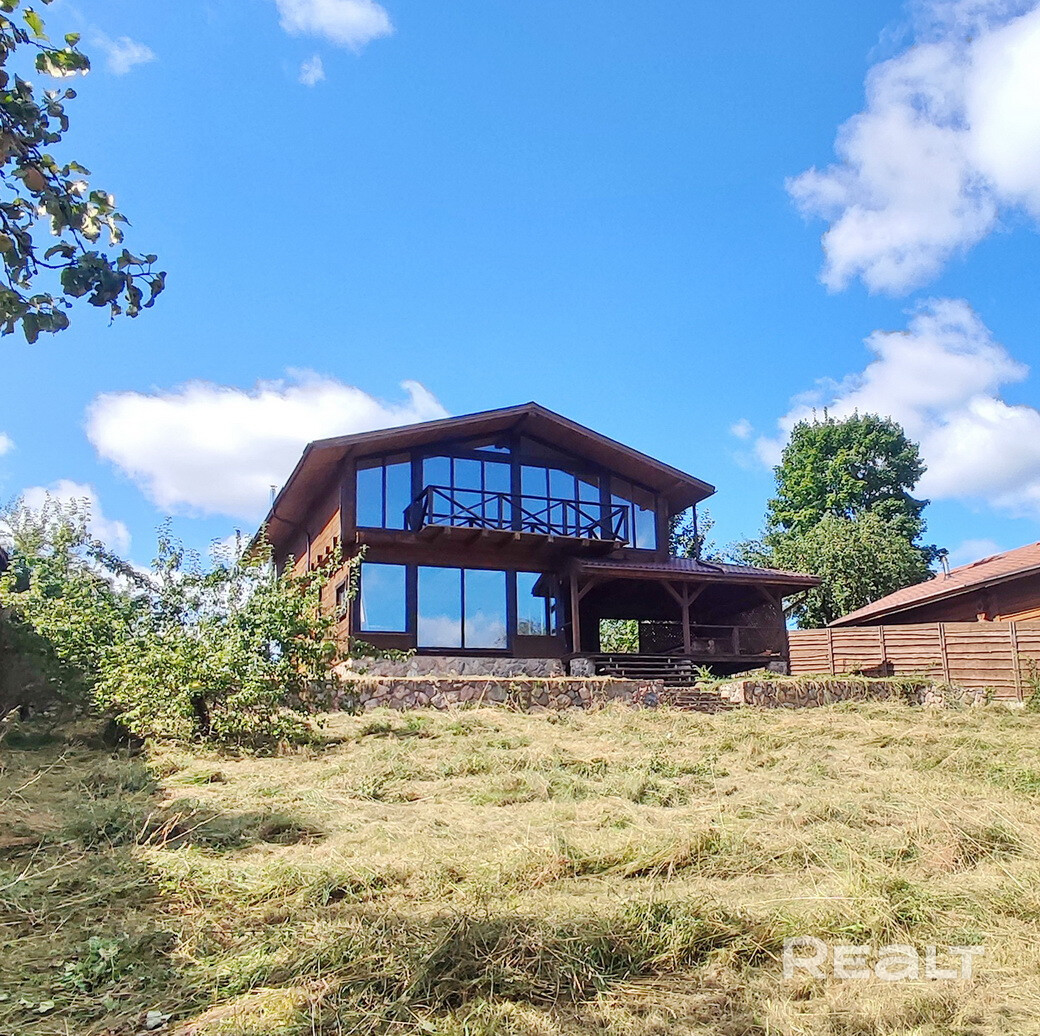 Высокое качество строительства и материалов. Уникальное сочетание дерева и стекла, дом как будто бы "воздушный"! Дом из профилированного бруса, два уровня, та часть дома, которая обращена к озеру полностью остеклена, находясь внутри дома ощущается полное единение с природой ! Внутренняя отделка - дерево и плитка - теплые полы. Необыкновенный запах дерева и воды от озера - более экологически чистого места трудно найти. Отопление - электричество и камин, канализация местная. В доме два санузла, терраса, балкон, вода -скважина.