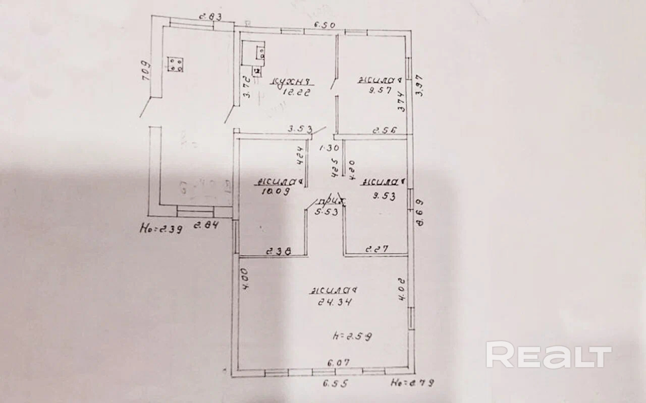 Четыре светлые, уютные комнаты + столовая + кухня + прихожая + подвал.