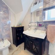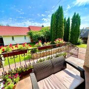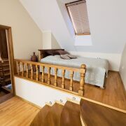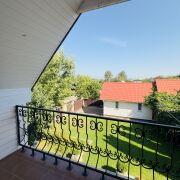 На втором этаже находится спальня с выходом на террасу и две уютных жилых комнаты, санузел с душевой кабиной и ванной.