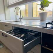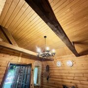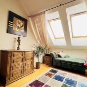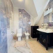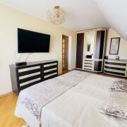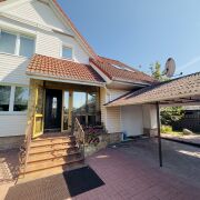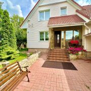Дом имеет 2 уровня. Высота потолков-2,7 м. На первом этаже находится гостиная-27,4 м2, полы-паркет из натурального дуба; кухня-14,5 м2 с теплыми полами и оборудована современной бытовой техникой, фурнитурой "Blum", столешница из камня. Санузел на первом этаже с прачечной.