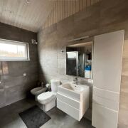 Дом оборудован всей необходимой мебелью и бытовой техникой. Встроенная кухня, посудомоечная машина, варочная поверхность, духовой шкаф, холодильник, обеденный стол со стульями. Гостиная с панорамным остеклением и камином на дровах, кондиционер. Две раздельные комнаты с мебелью из массива. Совмещённый санузел с водонагревателем, стиральной машиной, биде, душем. В прихожей просторный шкаф-купе.