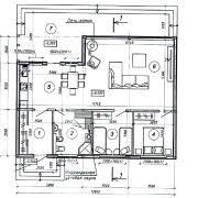 Фундамент - бетонный, прикрытия – дрянные, полы – доска, окна – ПВХ, металлическая кровля, электричество – 380 вольт, водоснабжение - центральное, канализация - местная, гараж металлический – 41 м2, видеонаблюдение по периметру дома,установлена сигнализация, есть возможность включать и регулировать отопление в доме удаленно, на кухне встроена система обратного осмоса, в санузле установлен умягчитель воды..