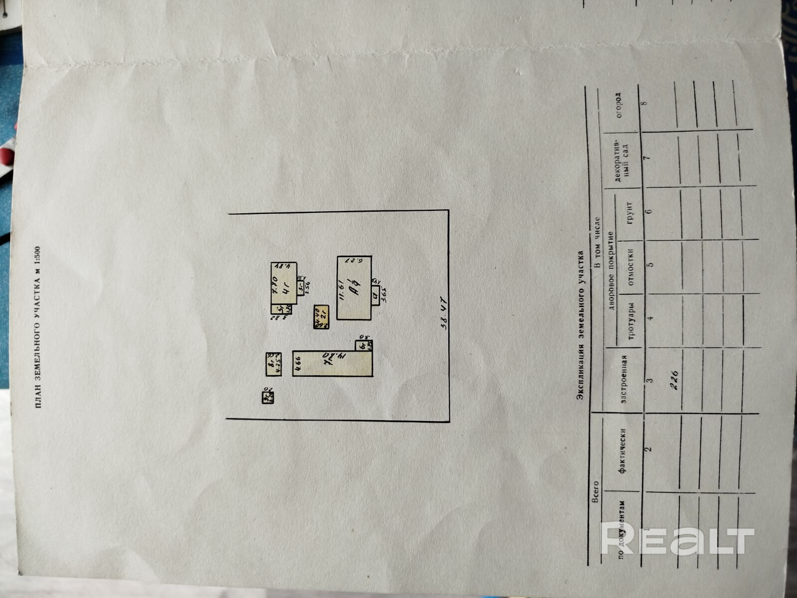 - Площадь участка