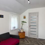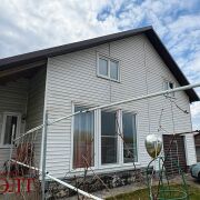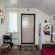 Продаётся жилой дом в 10 километрах от города в коттеджном посёлке, экологически чистом районе. Дом каркасный, обшит сайдингом, крыша ондулин. Первый этаж полностью в жилом состоянии. Большой совмещённый санузел с душевой кабиной, прихожая, гостиная с окнами в пол. Кухня с выходом в гараж и в сад. На втором этаже три комнаты без отделки. Дом отапливается электричеством, вода центральная, канализация местная. Есть баня с летней кухней и дровник. Участок ровный, сухой, заложен молодой сад с плодовыми деревьями.