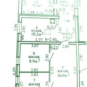 Общая площадь 63,6 м2; жилая 32,7 м2; кухня 10,2 м2.
