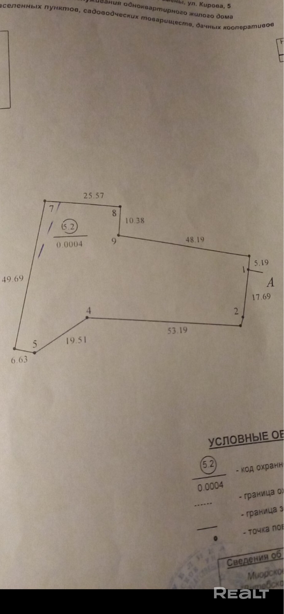 - Площадь участка