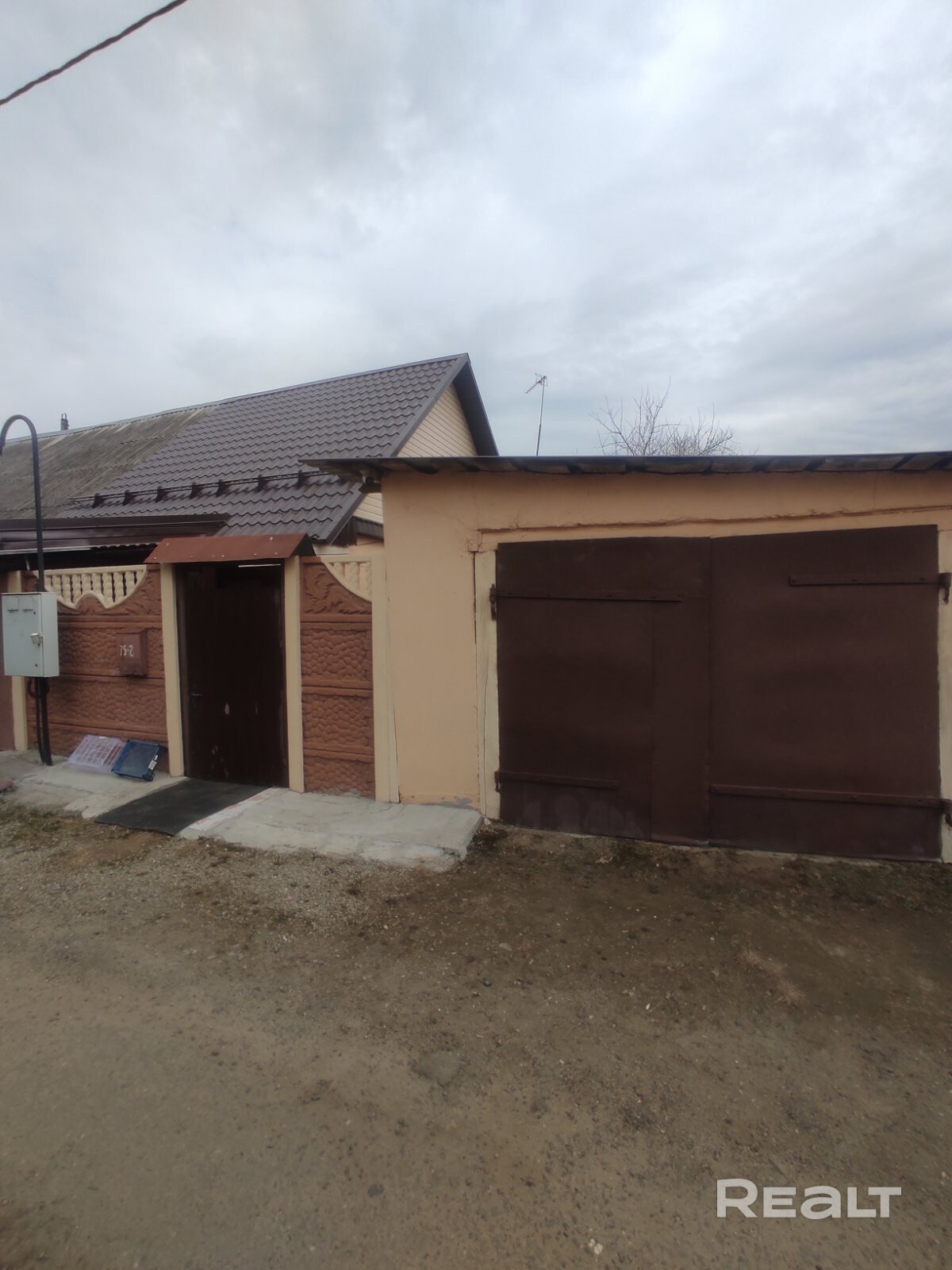 Дом деревянный, обложен кирпичом, оштукатурен.