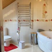 На 2-ом этаже: три жилых комнаты, совмещенный санузел, парилка с душевой и просторной комнатой отдыха.