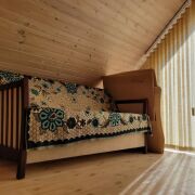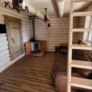 Продам дачный дом с баней и верандой из шлифованного бревна на ВЫВОЗ. Отдам полностью все (крыша, окна, двери и все, что внутри). Крыша метало черепица, пол и потолок из заводской доски, стены шлифованы и окрашены. Мебель изготовлена под заказ по индивидуальному проекту, крафтовые светильники.
