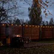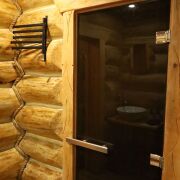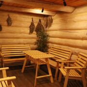 Баня 2-х этажная из Бревна диаметром 35-40см. 1-й этаж парилка с очень крутой печью (топить с улицы), душ, туалет, и полностью мебелированная комната отдыха. 2-й этаж сделана отделка только нет мебели (есть дизайн проект). Также есть терраса с мебелью, мангальная зона со всем необходимым. Веники дуб 200шт. Также большой красивый дровник с дровами 5-6 кубов. Также сделана декоративная подсветка и летом газон. Баня так же зонирована красивым забором
